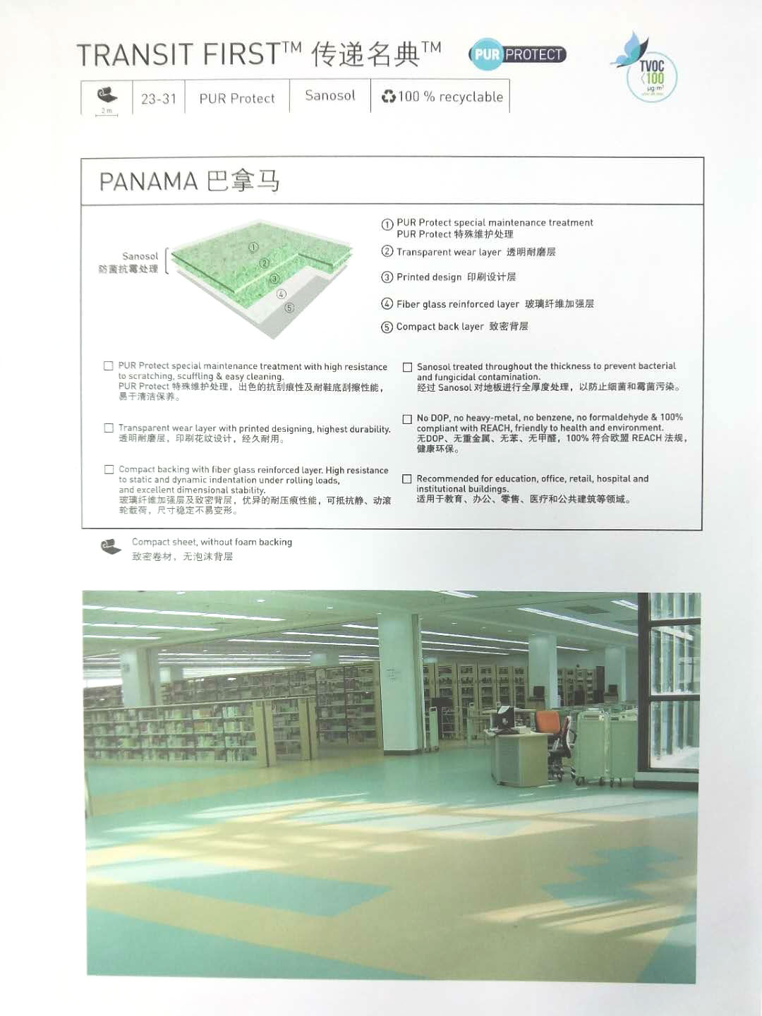 傳遞名典巴拿馬經過PUR Protect維護處理及Sanosol抗菌防霉處理,出色的抗刮痕性及耐     鞋底刮擦性能,易于清潔保養(yǎng)。適用于:教育、辦公、零售、醫(yī)院和公共建筑等領域。