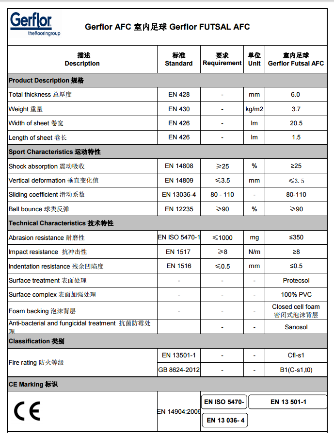 潔福AFC室內(nèi)足球地板,全新的潔福室內(nèi)足球地板,共有2個(gè)顏色,為室內(nèi)足球的標(biāo)準(zhǔn)紅藍(lán)二色。厚度 6.0mm。表面為PROTECSOL特殊維護(hù)處理,耐臟抗污,易于養(yǎng)護(hù)。產(chǎn)品中加入了 Sanosol技術(shù),持久抑菌防霉。
