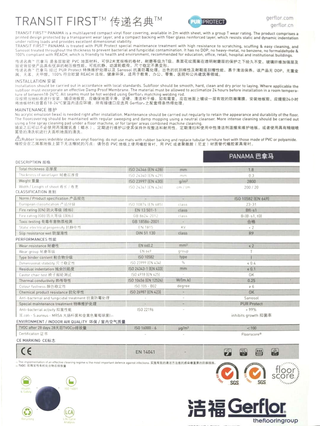 傳遞名典巴拿馬經過PUR Protect維護處理及Sanosol抗菌防霉處理,出色的抗刮痕性及耐     鞋底刮擦性能,易于清潔保養(yǎng)。適用于:教育、辦公、零售、醫(yī)院和公共建筑等領域。